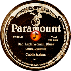 Record #12383B - Bad Luck Woman Blues - Charlie Jackson - 1926