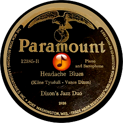 Record #12385B - Headache Blues - Dixon's Jazz Duo - 1926