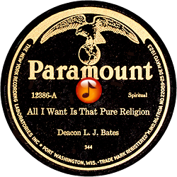 Record #12386A - All I Want Is That Pure Religion- Deacon L. J. Bates - 1926