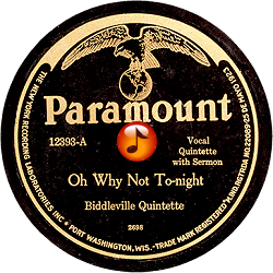 Record #12393A - Oh Why Not To-night- Biddleville Quintette - 1926