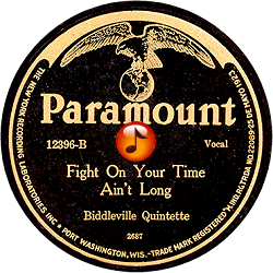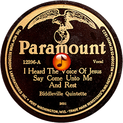 Record #12396A - I Heard The Voice Of Jesus Say Come Unto Me And Rest - Biddleville Quintette - 1926 Record #12396B - Fight On Your Time Ain't L:ong - Biddleville Quintette - 1926