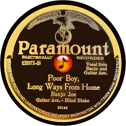Record #12571A - Can You Blame The Colored Man - Banjo Joe - 1927 Record #12571B - Poor Boy, Long Ways From Home - Banjo Joe - 1927