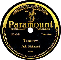 Record #12596A - Among My Souvenirs - Jack Richmond - 1927 Record #12596B - Tomorrow - Jack Richmond - 1927