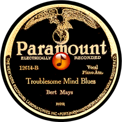 Record #12614B - Troublesome Mind Blues - Bert Mays - 1928