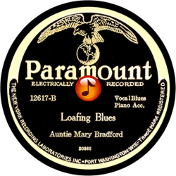 Record #12617B - Loafing Blues - Auntie Mary Bradford - 1928
