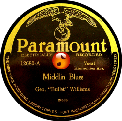 Record #12680A - Middlin Blues - Geo. "Bullet" Williams - 1928