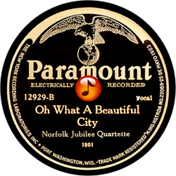 Record #12929B - Oh What A Beautiful City - Norfolk Jebilee Quartette - 1930