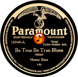 Record #12940A - Be True Be True Blues - Henry Sims - 1930