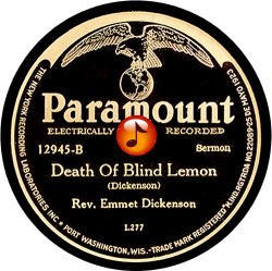 Record #12945B - Death Of Blind Lemon - Rev. Emmet Dickenson - 1930