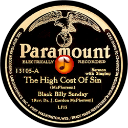 Record #13105A - The High Cost Of Sin - Black Billy Sunday - 1931