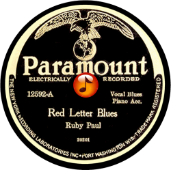 Record #12592A - Red Letter Blues - Ruby Paul - 1927