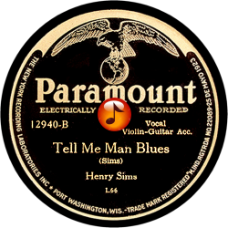 Record #12940B - Tell Me Man Blues - Henry Sims - 1930